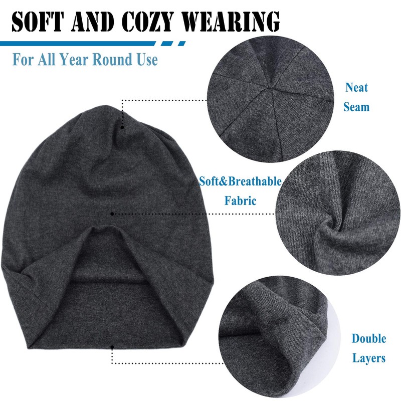 - ULTRA-SOFT & BREATHABLE ELLEWIN Beanie Hats Are Made Of Soft Cotton And % Spandex Which Gives You a Soft And Cozy Wearing. Double-Layer Design Keeps You Warm Without Burden And Good For Year-Round Use As It Is Breathable Fabric. Lightweight And Soft, Sweat Absorption, Gentle To Your Skin.