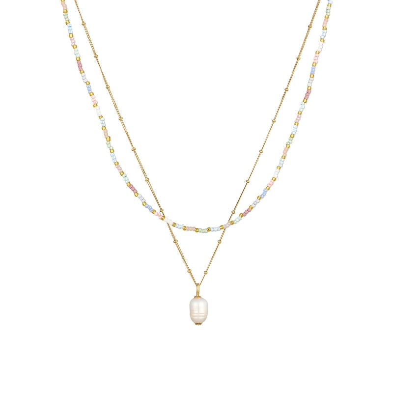Elli Women's Baroque Layer Necklace with Freshwater Cultured Pearl in 925 Sterling Silver, Glass Plastic, None