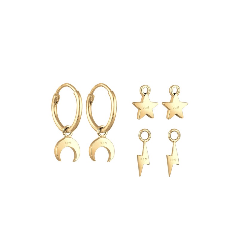 Elli Women's Creole Earrings Set Astro Moon Star Lightning in 925 Sterling Silver, Sterling Silver, None