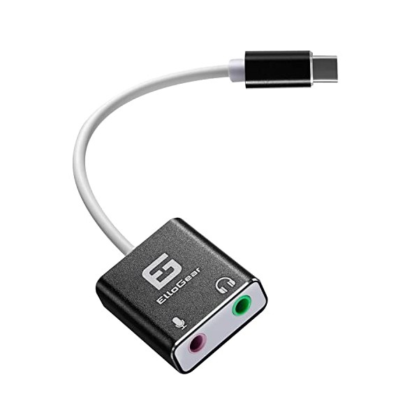 • Ellogear external sound card enables USB Type C connectivity with 3.5mm audio headphones, speakers or microphones.