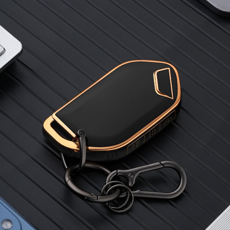ELOHEI for Kia Key Fob Cover with Keychain, Key Fob Case for 2024 2025 2026 Kia K5 Sorento Carnival Forte NIRO Soul Telluride Premium Soft TPU 360 Degree Full Protection (Gold Edge Black)