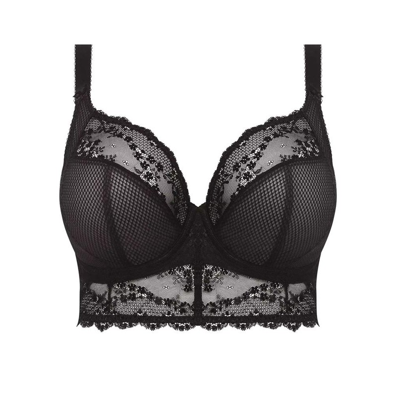 Elomi Women's Charley Bralette: Fashion-Forward Longline Style with Plunge Neckline Stretch Lace UK Sizes E-HH US Sizes DDD-L, Black, 34HH