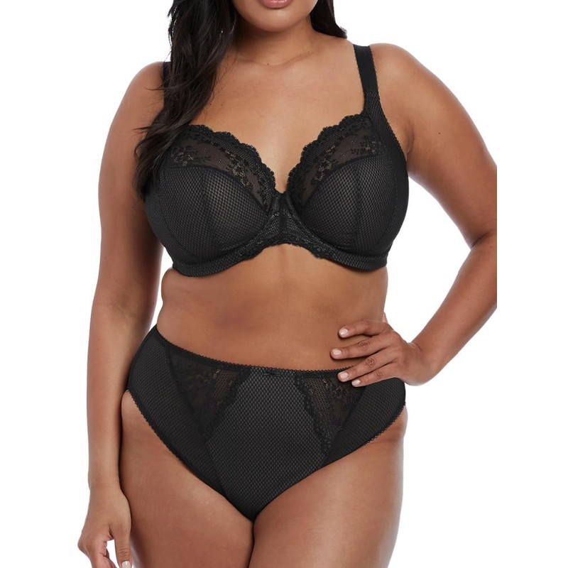 ELOMI Women's Charley Deep Cut Stretch Lace Underwired Plunge Bra, black
