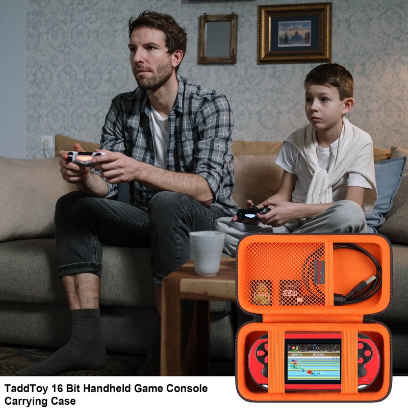 - 【Perfect Fit】【Specially Designed for TaddToy 16 Bit Handheld Game Console】--This handheld game console carrying case is specially designed for taddtoy 16 bit handheld game console. Internal space 1:1 build, perfectly fit for taddtoy 16 bit handheld game. extra mesh pocket for charging cables. (CASE ONLY! TaddToy 16 Bit handheld game and accessories are not included)