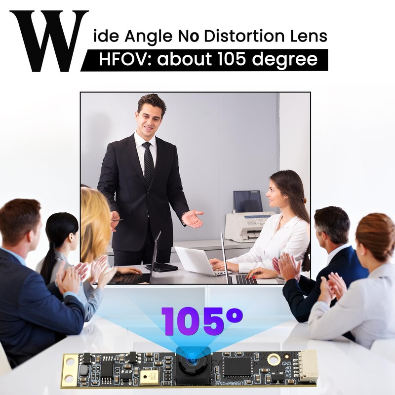 - 8MP Ultra HD 105 Degree Lens: 8MP CMOS IMX179 (3264(H) X 2448(V), high-definition resolution webcam is able to ensure your videos are always sharp and crystal clear. Capture most exciting details at every 30/15fps, FOV: 105°(H)