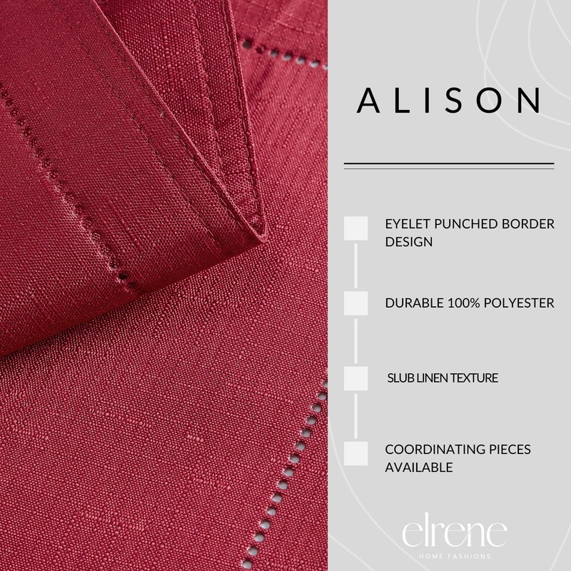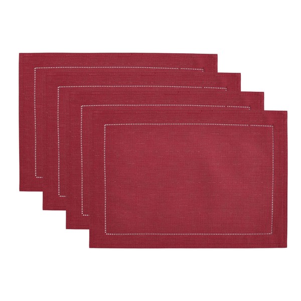 Elrene Home Fashions Alison Eyelet Border Design Cloth Wrinkle Resistant Fabric Placemat, Set of 4, 13"x19", Cranberry