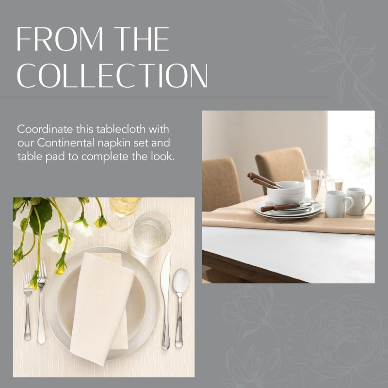 • EASY CARE: Elegant and sophisticated, the Continental tablecloth is machine washable and dryer-safe for effortless upkeep. Tumble dry on low heat and use a warm iron as needed.