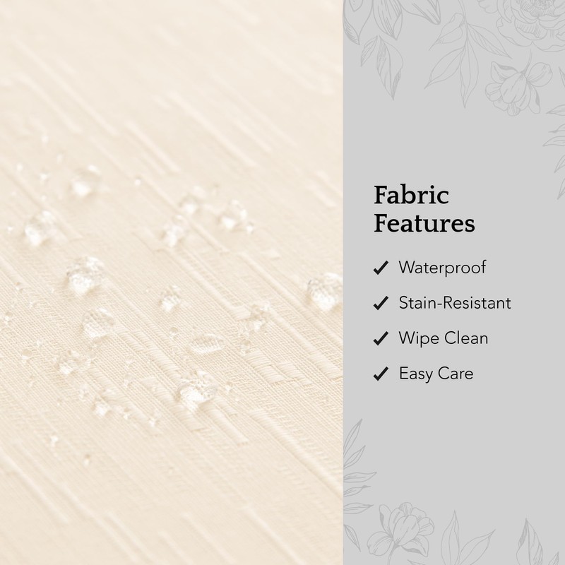 • WATER- & STAIN-RESISTANT FINISH: This practical tablecloth features a water-, stain-, and fade-resistant finish to protect your table from scratches and accidental stains and spills. The fabric easily wipes clean with a damp cloth or sponge.