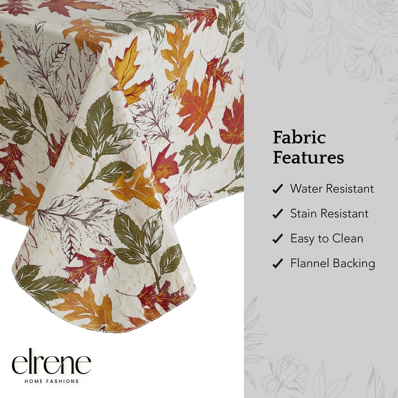 Elrene Home Fashions Harvest Vintage Leaves Water- and Stain-Resistant Vinyl Tablecloth with Flannel Backing, 52"x70" Rectangle