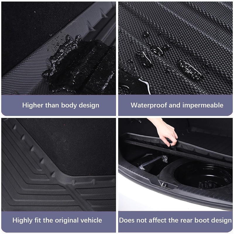 - 【Easy to Clean Up】There is water retaining design at the edge of the trunk cushion,which effectively prevents sewage from flowing into the car.No worrying about muddy shoes or food making your car dirty! Waterproof mats can be rinsed with water directly, which is easier to take care of.