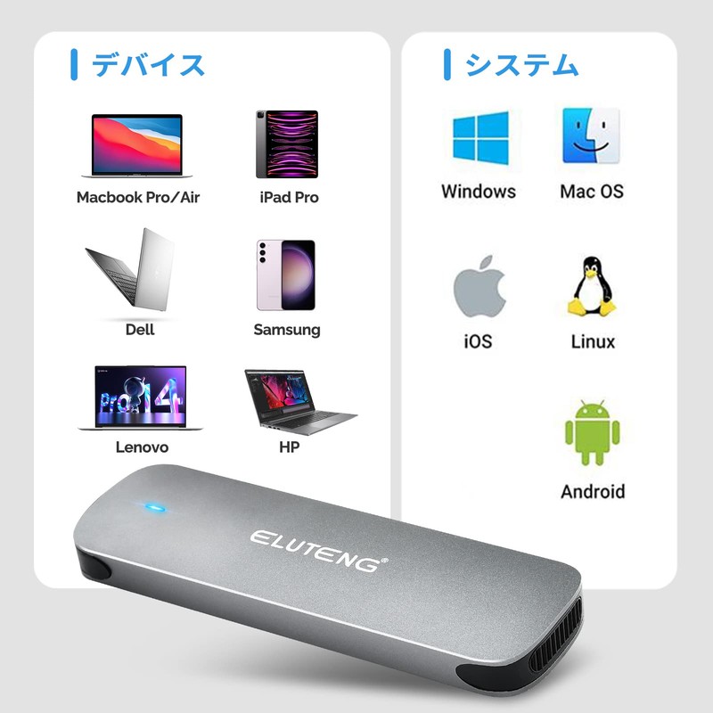 - Wide Compatibility: M.2 SSD external case is equipped with a USB Type-A to Type-C and a USB Type-C to Type-C data cable (0.5 m). Compatible with Windows 11/10/8/7/Mac OS/Linux systems. Supports Multi OS, Windows, Mac OS, Linux, Android Compatible with PC, smartphone, PC, smart TV, intelligent router, PS4, etc. Supports SSD up to 4TB Small and lightweight, convenient to carry