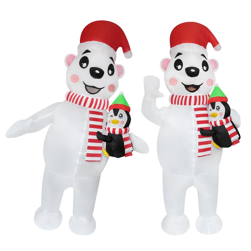 - Giant inflatable Polar Bear Holding Penguin Costume Christmas Costume with Built in Air Pump.