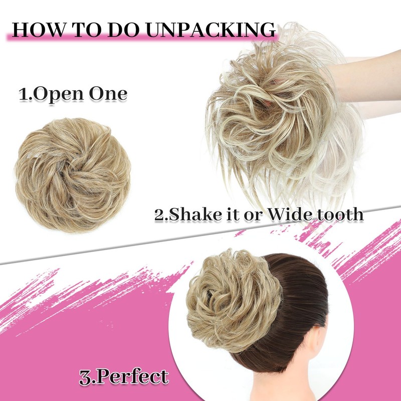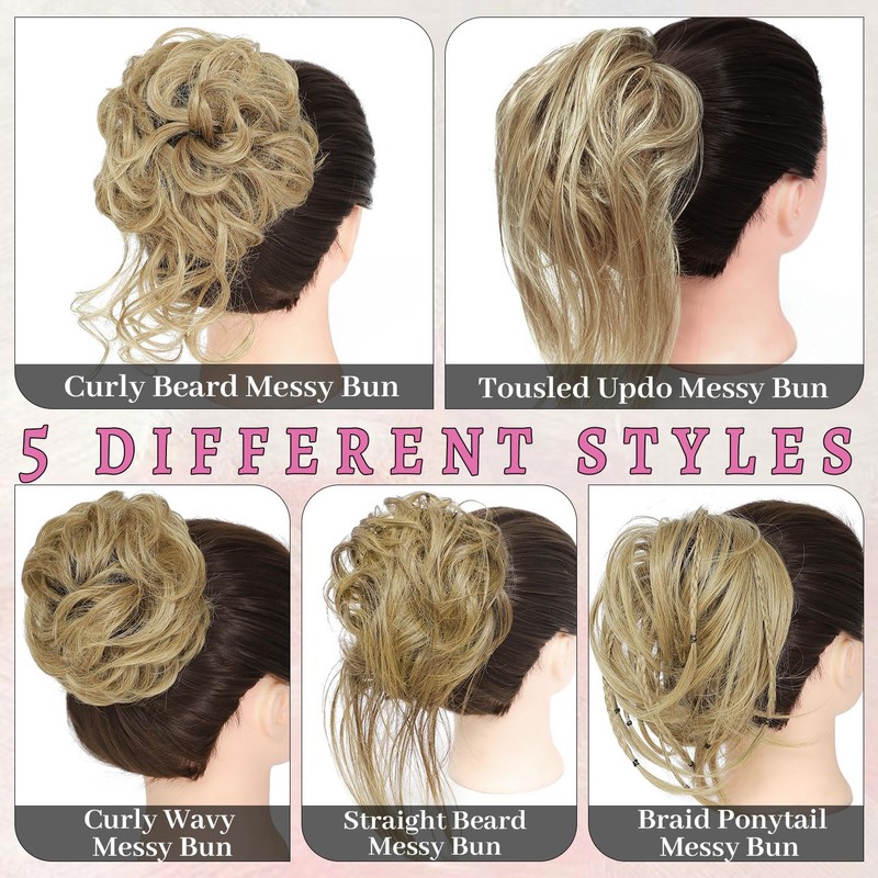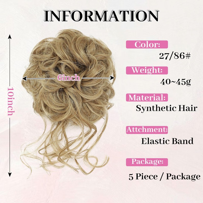Elvirgel 5 Stück Unordnung Haar Chun Scrunchies Haarverlängerung Lockig Kunsthaar Unordnung Dutt für Frauen Updo Hairpiece (27/86)