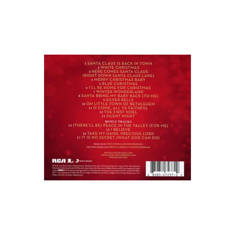 Christmas with Elvis and the Royal Philharmonic Orchestra once again pairs The King of Rock and Roll with England's most beloved orchestra for a new symphonic take on Elvis timeless Christmas favorites, with arrangements recorded at Abbey Road Studios in London. Includes "Blue Christmas," "Here Comes Santa Claus (Right Down Santa Claus Lane)," "Merry Christmas Baby," "Silent Night" and more. This deluxe edition also includes newly-orchestrated version of the four gospel hymns from Elvis' Peace In The Valley EP including "(There'll Be) Peace In The Valley (For Me)" and "Take My Hand, Precious Lord."
