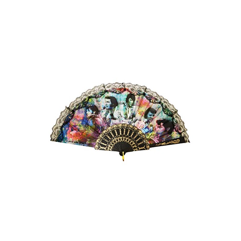 - Elvis Presley hand fan with colorful collage