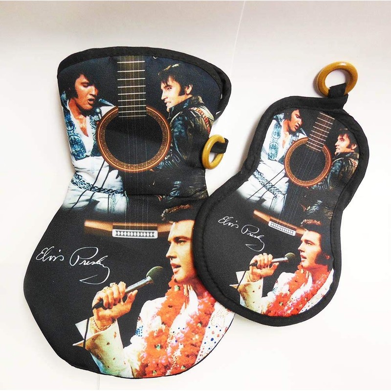 Elvis Pot Holder Oven Mitt Set Guitar 3 Images