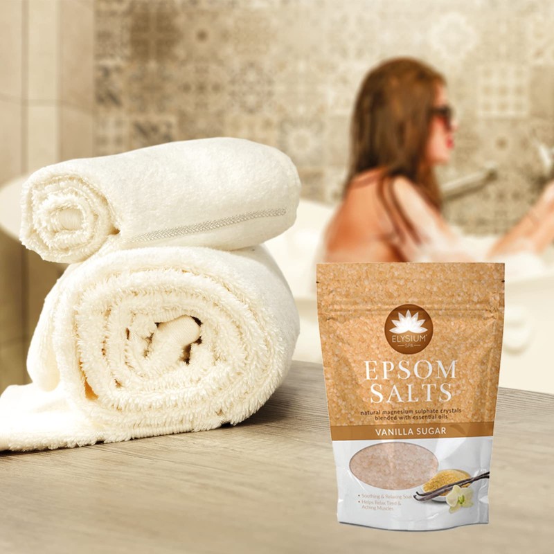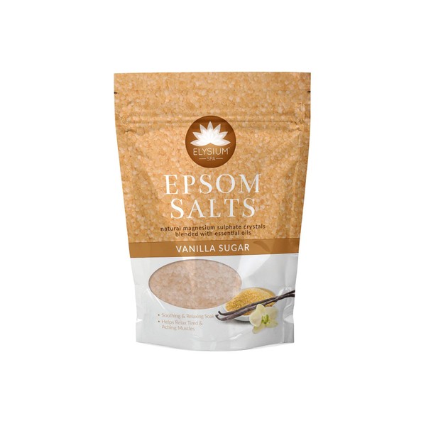 - CLEAN & FRESH: Elysium Spa Epsom Salts, whether soaking your feet or taking a bath in espsom salts, you will soothe muscle aches, relax the body, improve circulation and even treat sunburn. Fragranced with vanilla sugar oil in a resealable bag for easy storage.