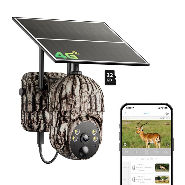 • 【Motion Detection Alerts】The built-in PIR sensor quickly detects movement, capturing images and videos in just 0.2 seconds while sending alerts to your phone. A 32GB Memory card is included for local storage (up to 128GB), along with a 30-day trial of cloud storage, ensuring you won't miss key moments.