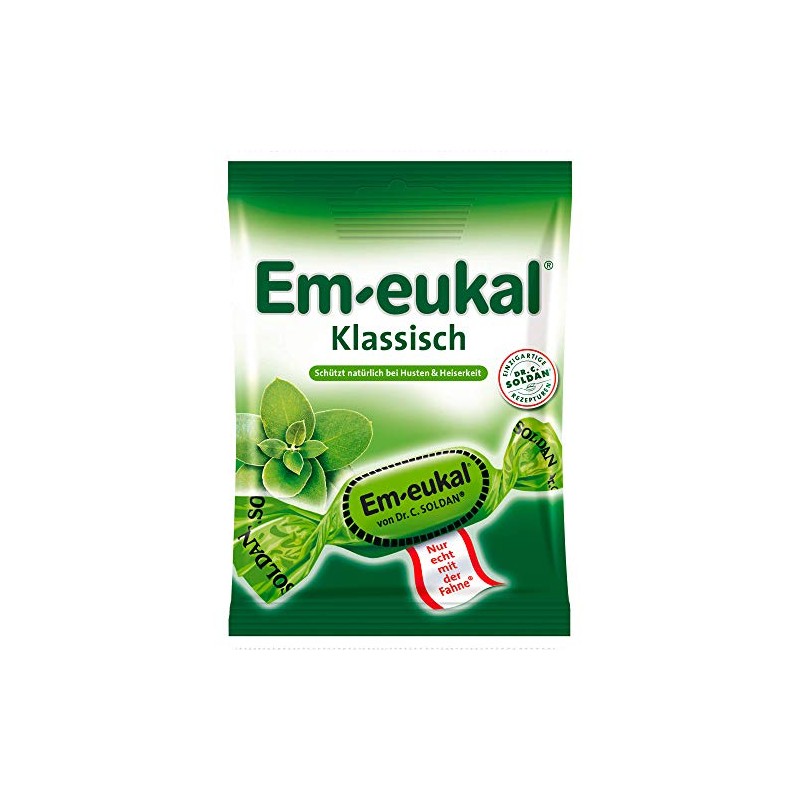 The familiar cough candy classic according to the million-fold proven original recipe from pharmacist Dr. Carl Soldan protects naturally against coughs and hoarseness. The unique combination of eucalyptus oil and menthol provides a soothing effect and a distinctive taste. Only genuine with the flag - guarantees the highest candy quality. Sugary. Gluten and lactose free.