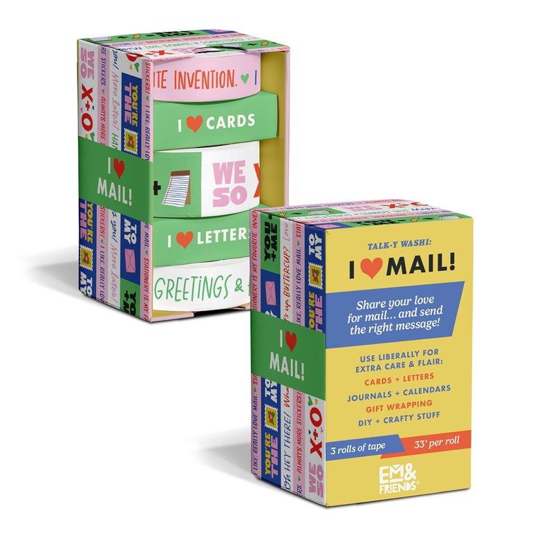 - Fun and funny decorative washi tape for stationery lovers that celebrates snail mail (and cuteness) from greeting cards maker Em & Friends!