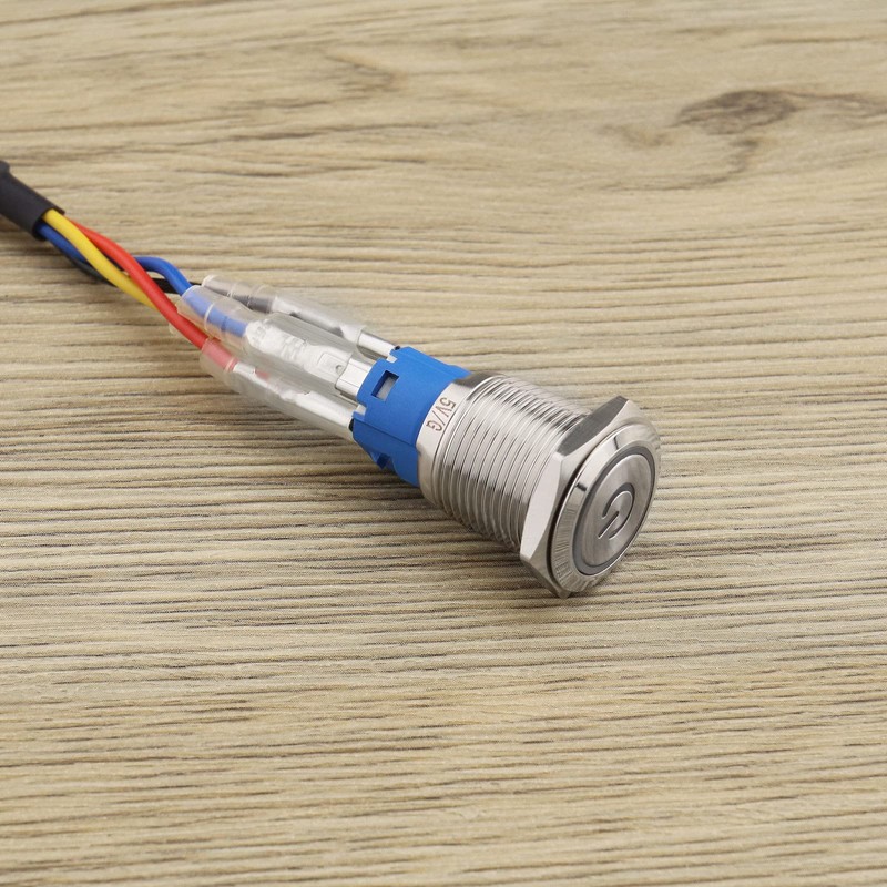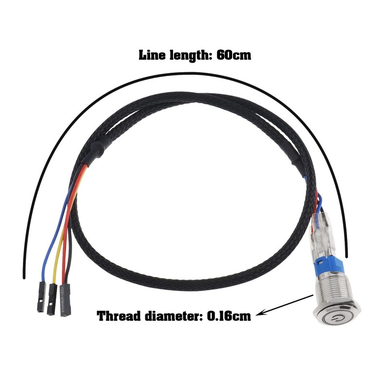 eMagTech PC Power Reset Switch Computer Power Button Cable LED Cable Wire for Computer DIY Switch Blue Light 16mm Mounting Thread 60cm Cable Length