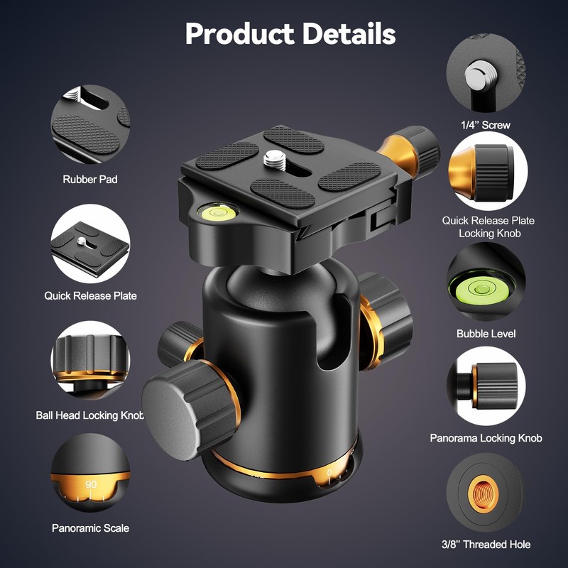 - 【High Quality Materials】The entire ballhead mount is crafted from high-grade alloy, precision-engineered for robust durability performance