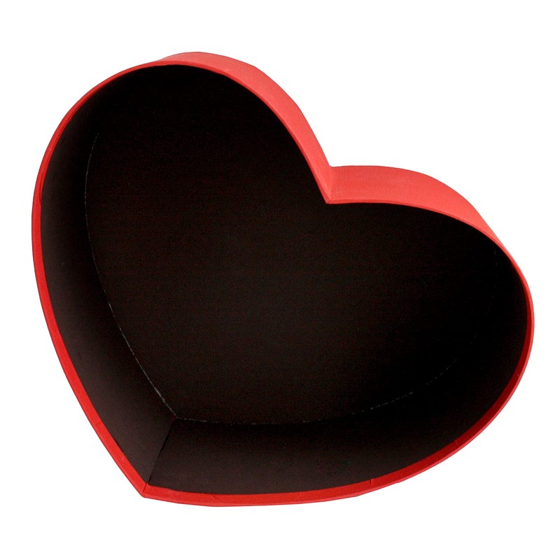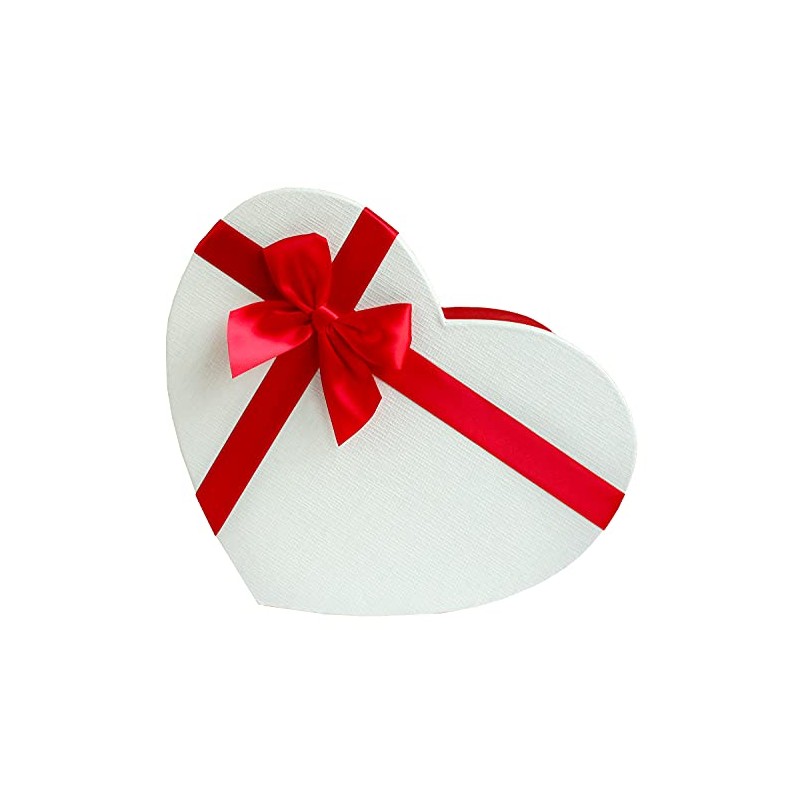 Emartbuy Rigid Heart Shaped Gift Box, 26.7 x 21.7 x 13 cm, Textured Red Box with White Lid, Brown Interior and Satin Bow Ribbon