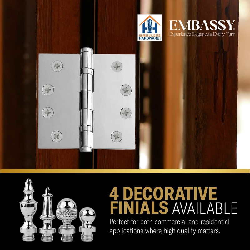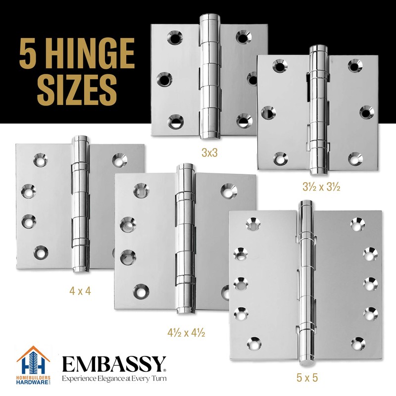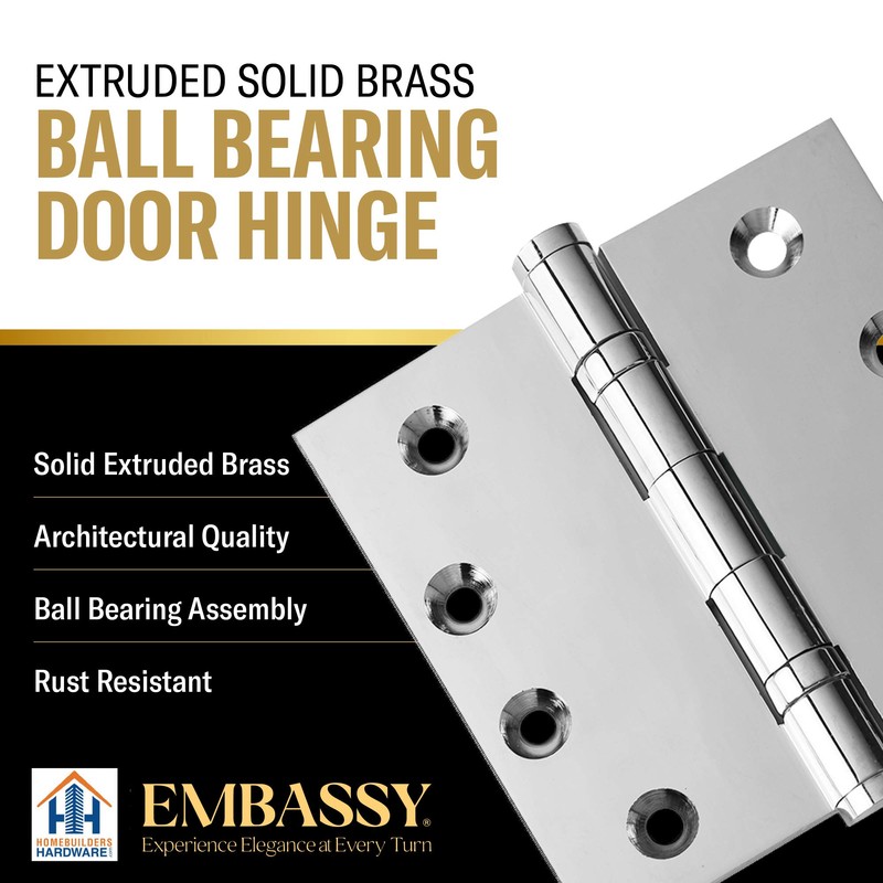 Embassy Door Hinge Solid Brass - 4 x 4 Inch, Heavy Duty, Polished Chrome, Ball Bearings, Rust Resistant Stainless Steel Pin, Architectural Designer Grade, Home Improvement, 3 Pack