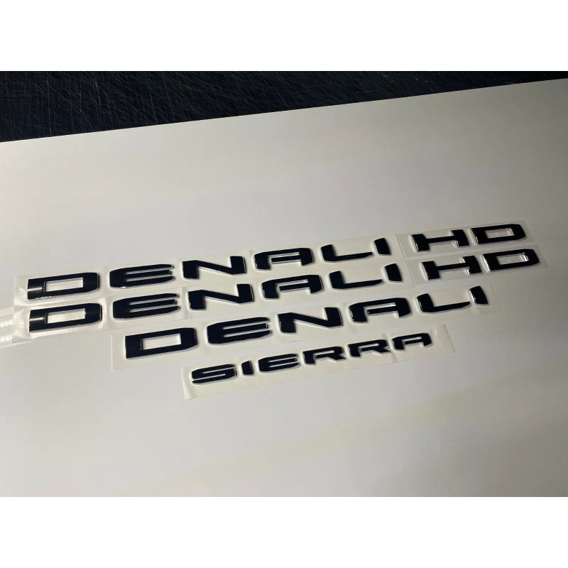 - Set of (4) GMC Sierra DENALI HD Emblem Letter Overlay Decals.