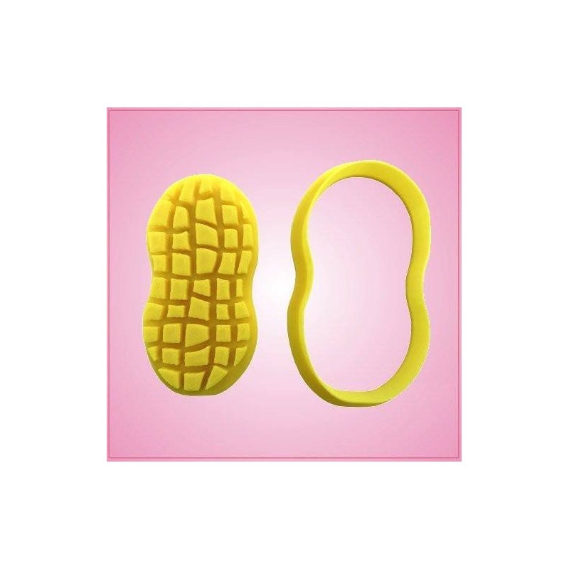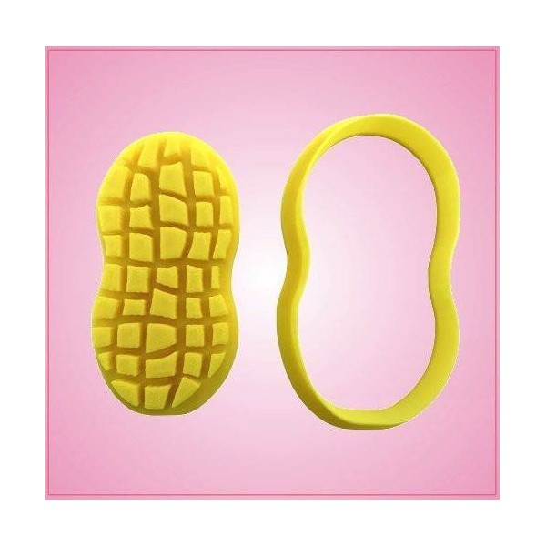 Our Embossed Peanut Cookie Cutters come in two pieces. The outline cuts the shape measuring 3-1/2 inches tall, 1-3/4 inches wide, and are made of yellow plastic. The inside portion is used to press down to achieve the peanut texture right into the dough. Cleaning instructions: hand wash, towel dry. Buy your embossed peanut cookie cutter today! *Hand wash only, cookie cutter cannot go in dishwasher.