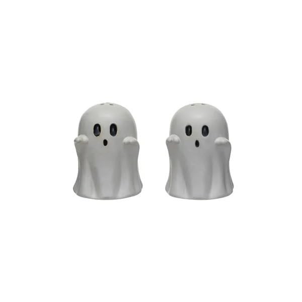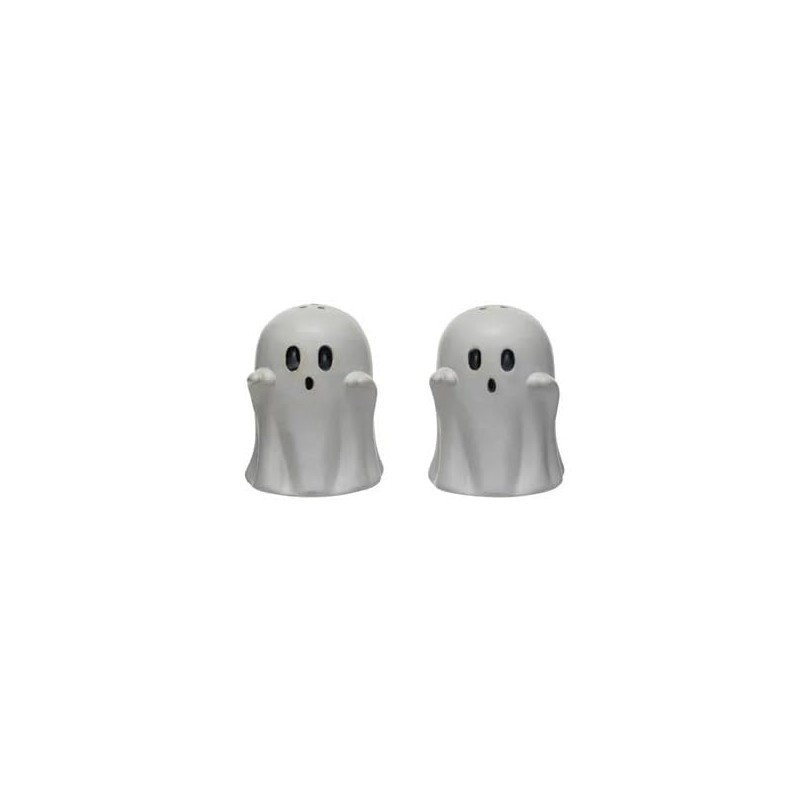 Embossed Stoneware Ghost Shaped Salt & Pepper Shakers, Set of 2