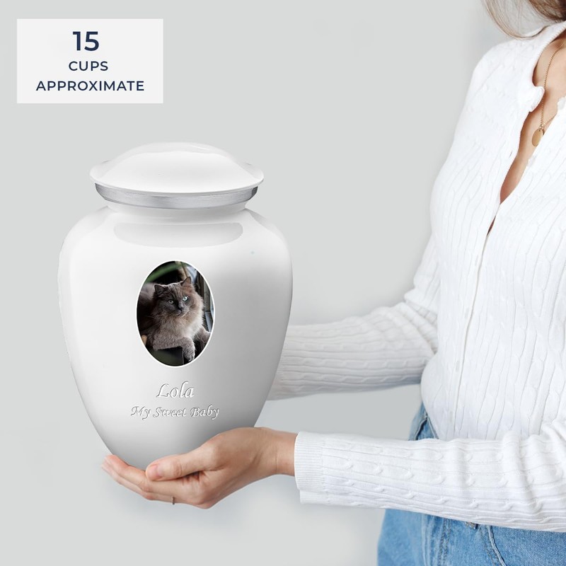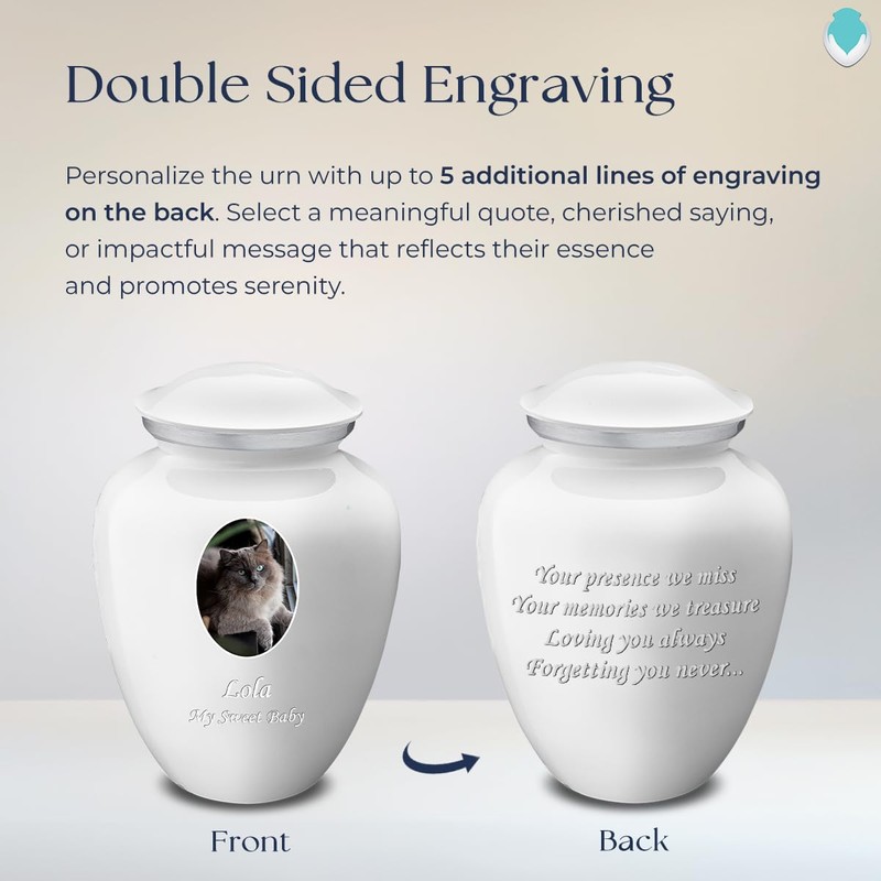 Embrace Portrait Urns for Large Pet Ashes, Cremation Urns for Pets. Cremation Urn for Home, Vault with Custom Engraving with UV Printed Photo (_White Double Sided)