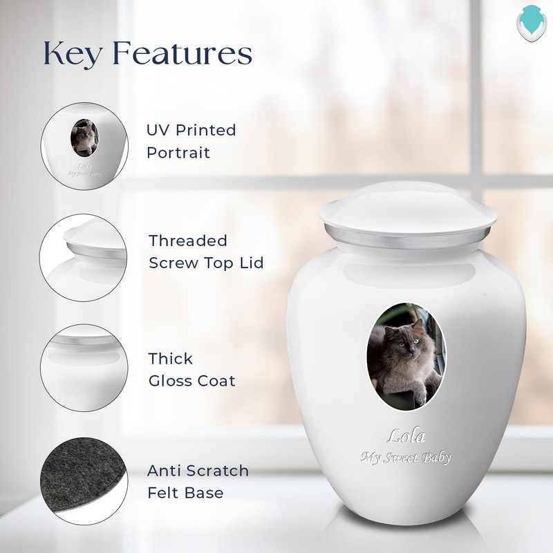 • Masterfully Handmade - The Embrace Urn for ashes for women & men comes from the precise craftsmanship of our artisans. Our large pet urns for large pet ashes feature hand-set and hand-painted details, available in Opaque Glossy, Deep Glossy, or Pearlescent finish.
