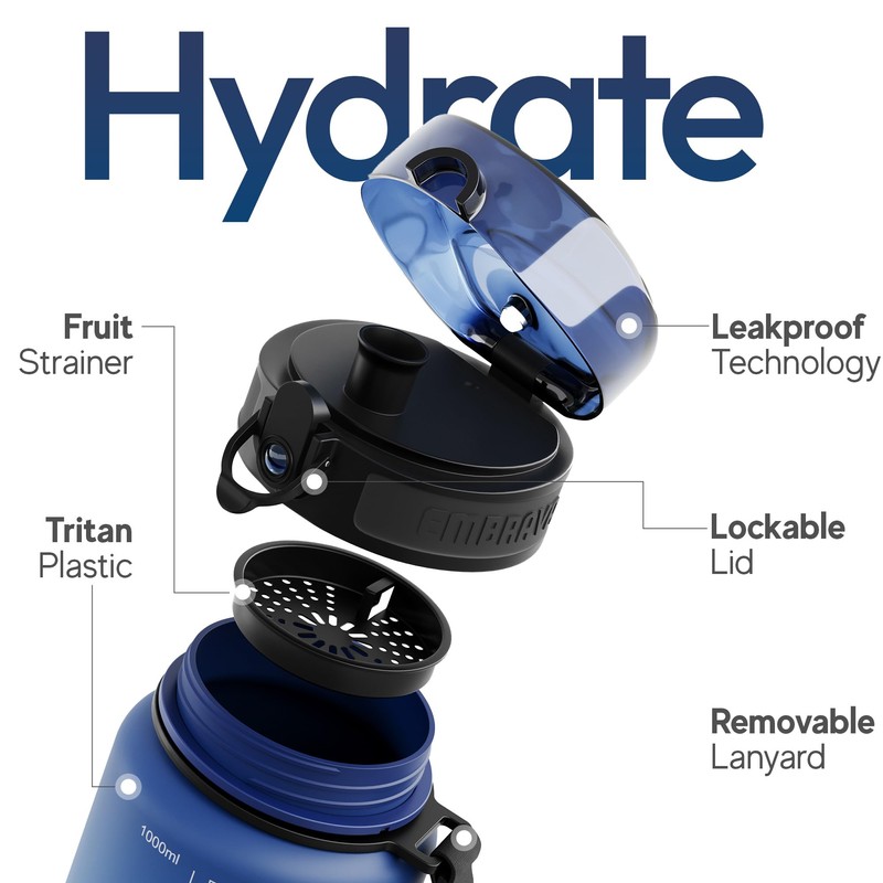 Discover the Embrava 32oz Water Bottle, the ultimate hydration solution for your dynamic lifestyle. Engineered with durable, BPA & BPS-free Tritan plastic, this bottle features a fast-flow, flip-top lid that's securely leak-proof, ensuring water stays in - while keeping the bottle clean. Its narrow-mouth design facilitates easy filling and cleaning, while allowing for spill-free sipping on the move—perfect for cyclists, joggers, and gym enthusiasts alike.