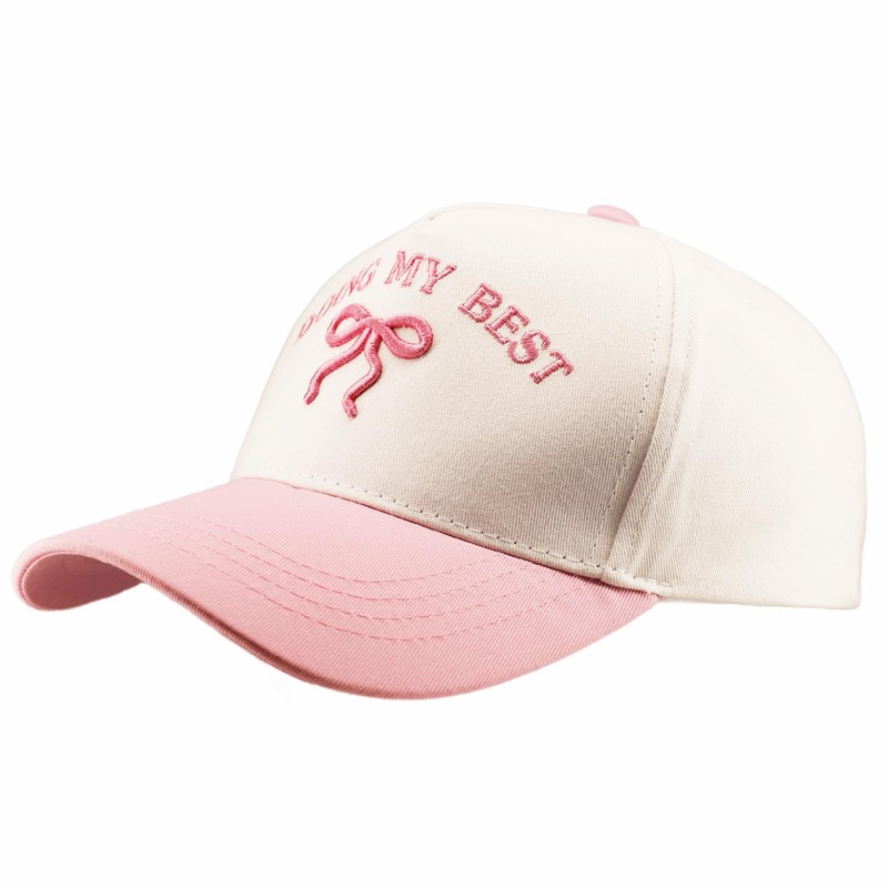 Embroidered Doing My Best Baseball Cap 3D Bowknot Two-Toned Dad Hat,Vintage,White/Pink