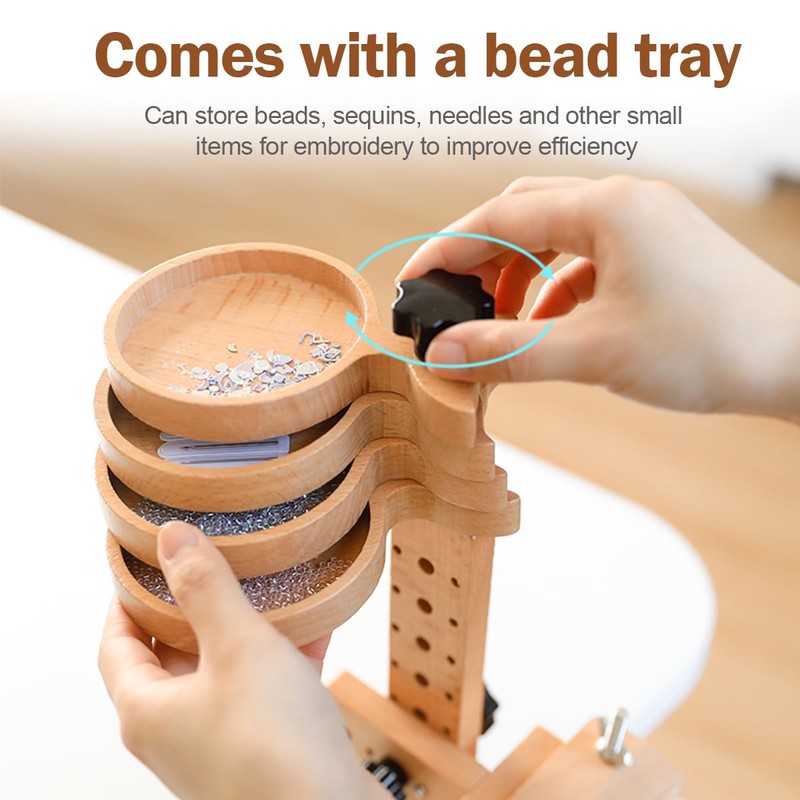 - ✅ All-in-One Storage & Convenience – Keep your embroidery essentials organized with a built-in storage tray for beads, needles, threads, and sequins. This embroidery hoop stand ensures easy access to your tools, keeping them secure and clean for a seamless crafting experience.