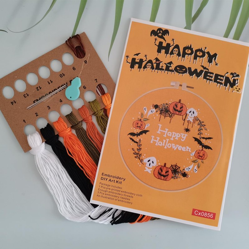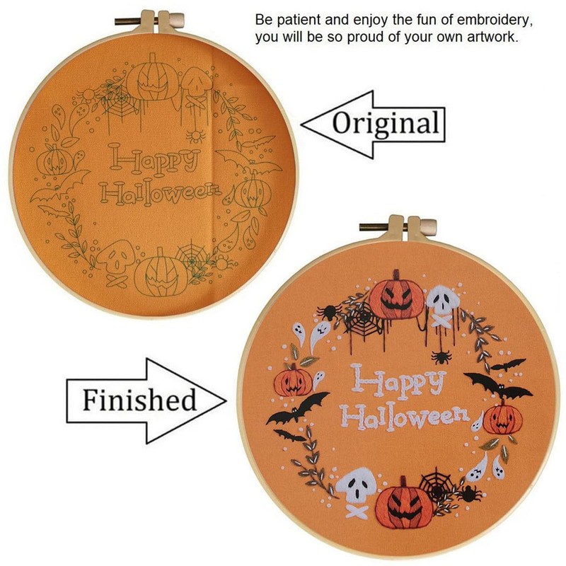 Embroidery Kit for Adults Beginners Starter Stitch Kit with Halloween Pumpkin Ghost Bat Spider Pattern Handmade Needlepoint Kits,Yellow
