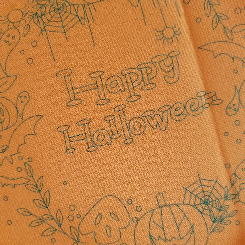 Pattern: Yellow fabric with Happy Halloween letter and pumpkin, ghost, bat, spider pattern.
