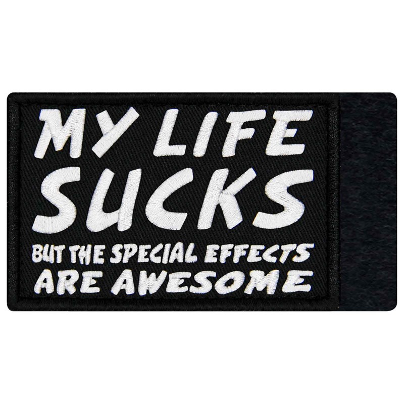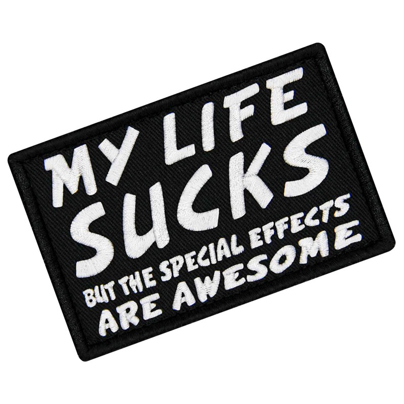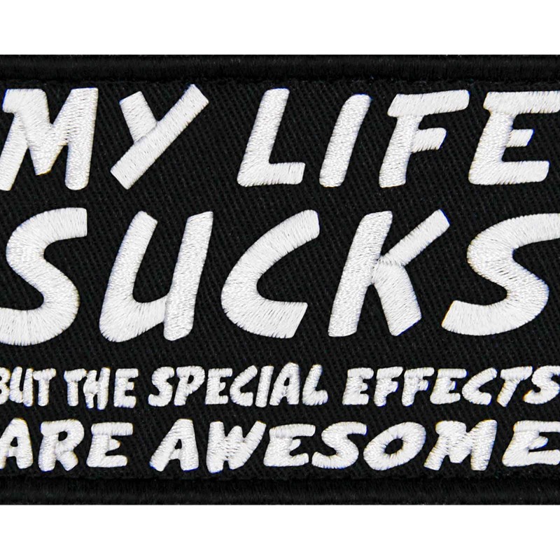 EmbTao My Life Sucks But The Special Effects Are Awesome Patch Embroidered Biker Badge Funny Applique Hook & Loop Emblem