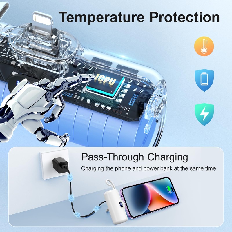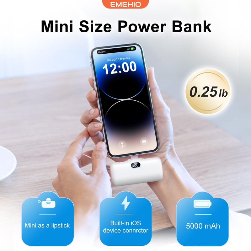 EMEHIO EMEHIO Portable Charger, Mini Power Bank, 5000mAh Phone Charger, Compact Battery Pack for iPhone & Android, USB C Cable, LCD Display, Battery Bank Compatible for iPhone 14/13/12/11/XS/X/8/7/6/5
