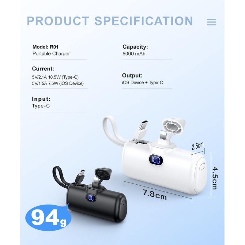 - LIGHTWEIGHT & MINI SIZE - 0.2 pounds and 3"*1.18"*0.98" compact size, ultra-light and compact, this portable charger keeps your smartphone powered during daily routines or travel. Makes no burden on the go.