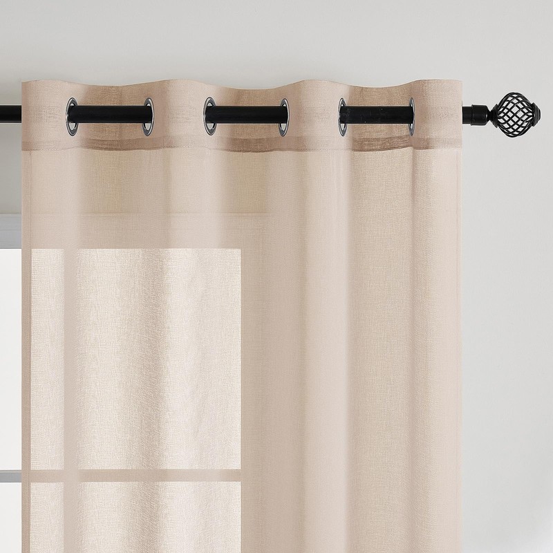 EMEMA Set of 2 Sheer Voile Curtains with Eyelets Transparent Voile Polyester Eyelet Curtain Transparent Living Room Airy Decorative Curtain for Bedroom 140 x 280 cm (W x H) Beige