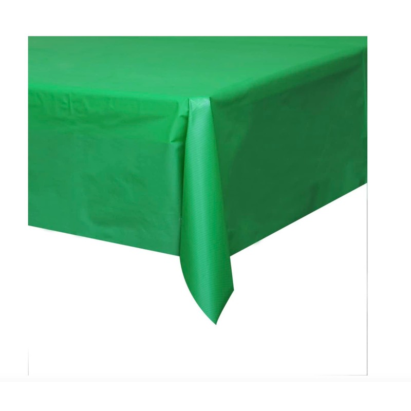 - Emerald green disposable table cover measures 108-inch x 54-inch