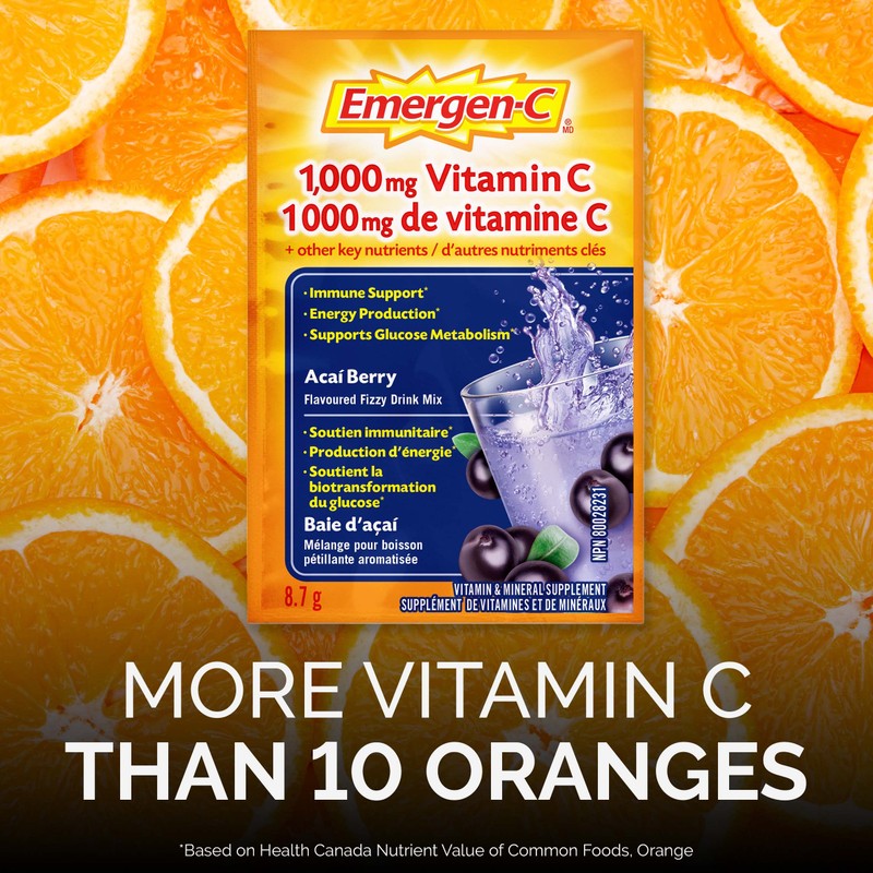 - INCLUDES 30 SACHETS: This package includes 30 individual serving-size sachets of Emergen-C Acai Berry flavour drink mix.