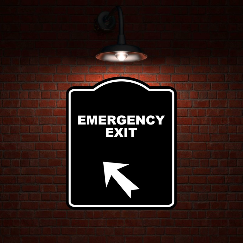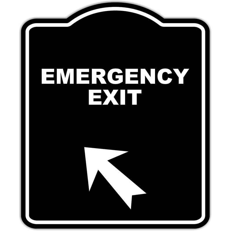 EMERGENCY EXIT Black Sign Arrow Up Left Aluminum Composite Sign 20 x 24 inches