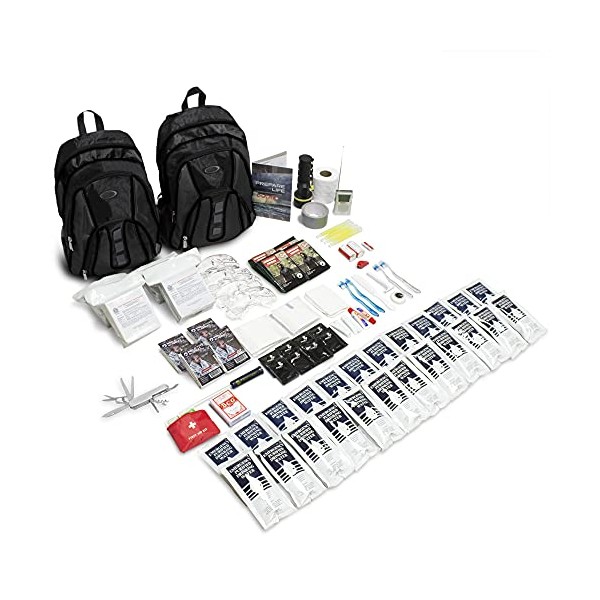 Emergency Zone The Essentials Complete Deluxe Survival 72-Hour Kit, Prepare Your Family for Hurricanes, Earthquakes, FLOODS, Emergency Disaster Go Bag- Available in 2 & 4 Person, Red or Black Bag