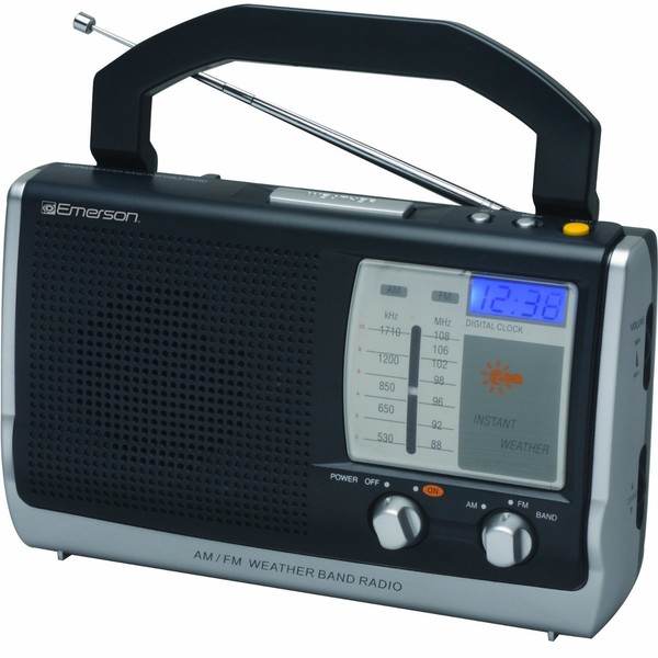 - Portable AM/FM radio with instant weather and digital clock