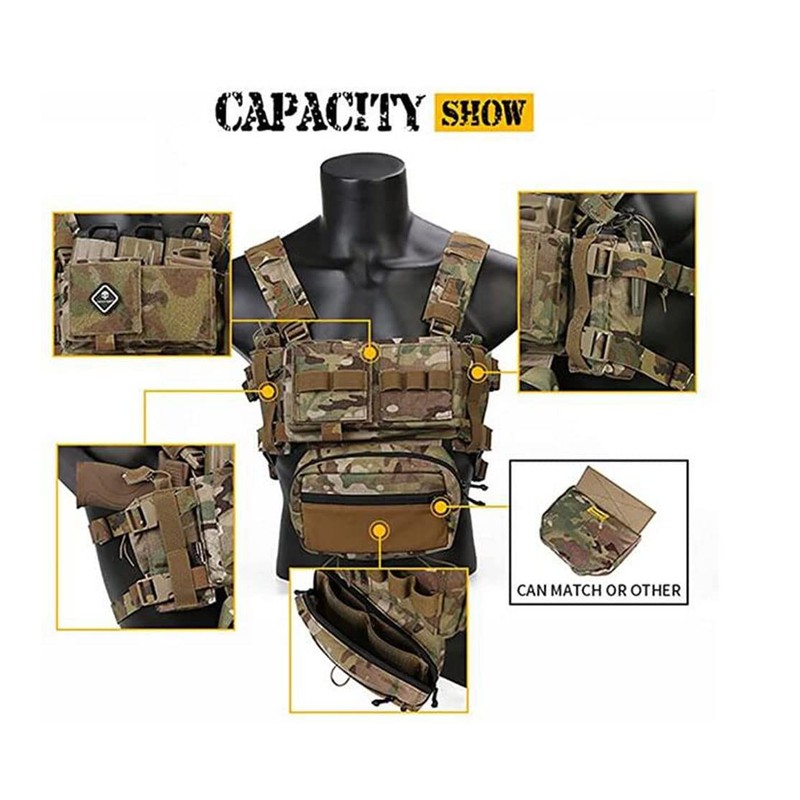 - 【Practical Chest Bags】Support carrying 6pcs 5.56 magazines,and comes with multiple accessories for modular need: shoulder strap,5.56 mag insert,radio pouch,micro fight expander wings,etc