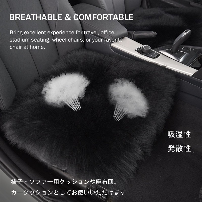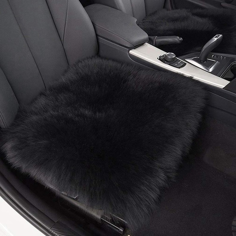 Emfay Shearling Seat Cushion Car Soft Wool Breathable Black