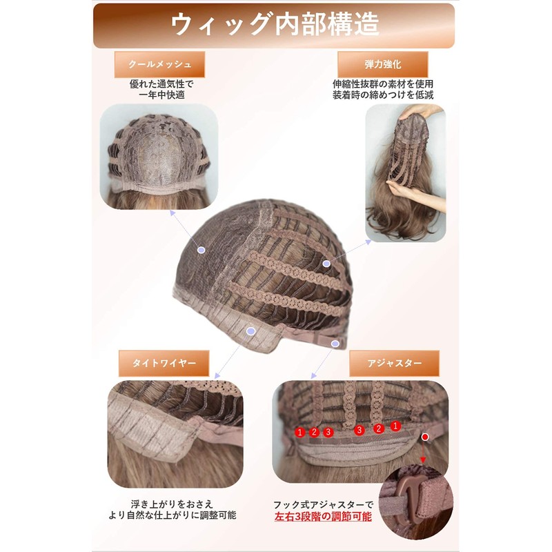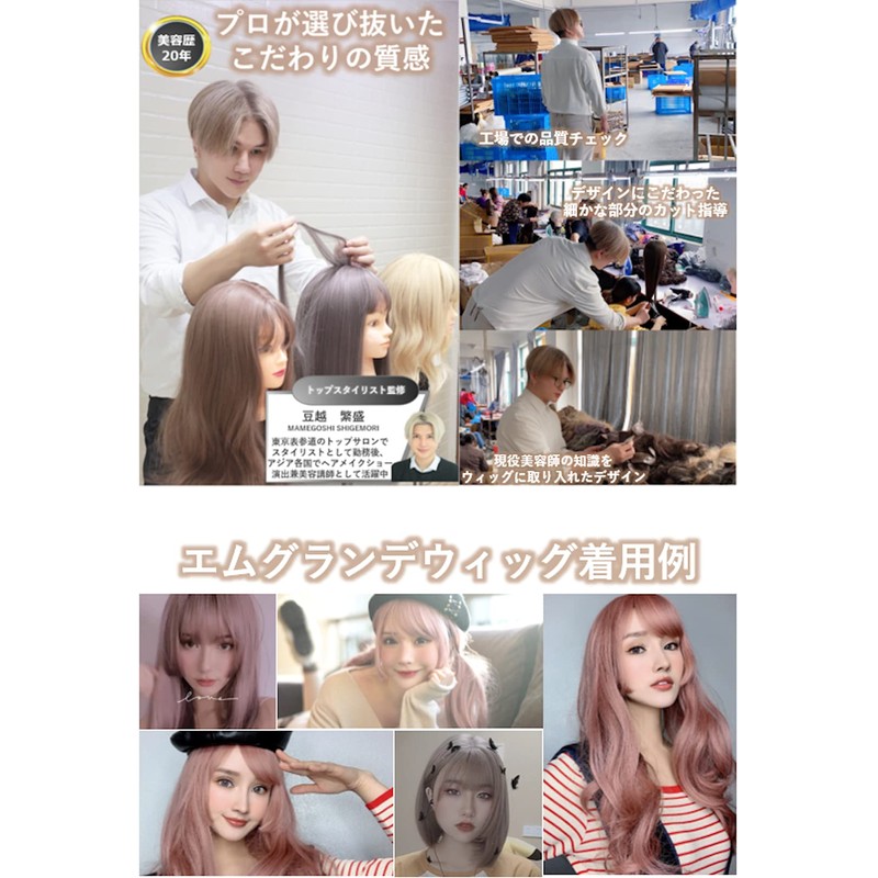 Emgrande Wig Premium Line [Supervised by Active Top Stylist] 6-piece Set, Princess Cut Women's Wig Wig Bob Long, Small Face Effect (Hime Bob Peach Beige DY02A)